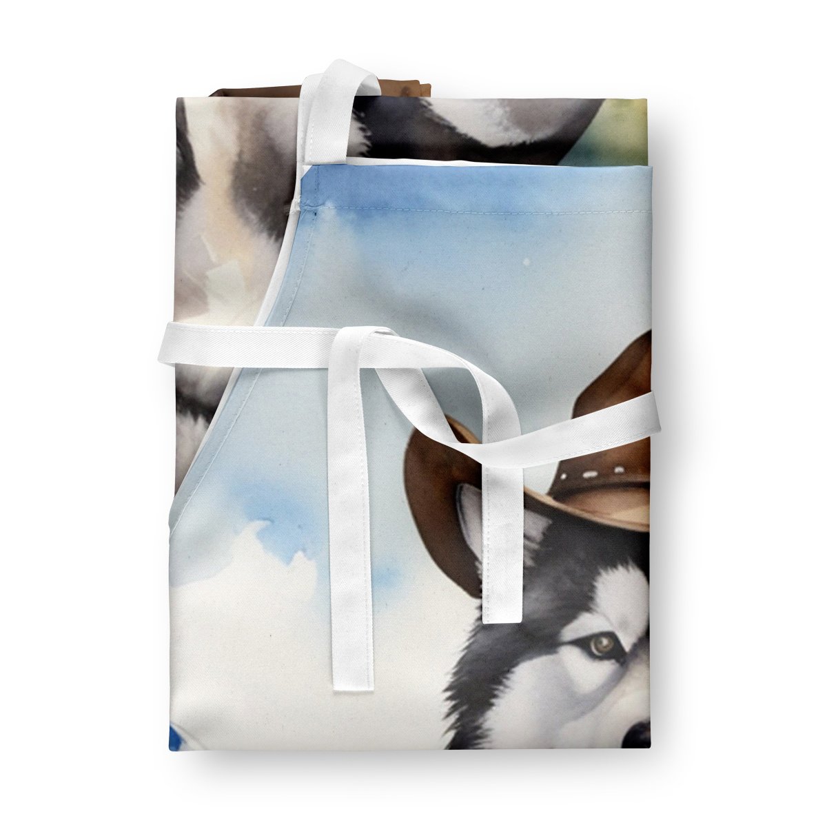Alaskan Malamute Cowboy Welcome Apron Cooking Kitchen Server Baking Crafts Gardening for Adult Women Men, Unisex, Large, Multicolor