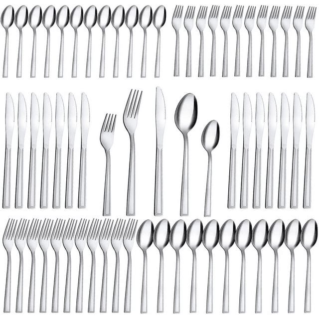 [service for 12 people]the 60-piece silverware set contains 12 dinner forks, 12 salad forks, 12 dinner spoons, 12 teaspoons, 12 dinner knives. Therefore, this silverware is more affordable and cost-effective than other similar flatware. If you want to prepare more cutlery for your family and guests, these cutlery set is an irreplaceable dining tool.