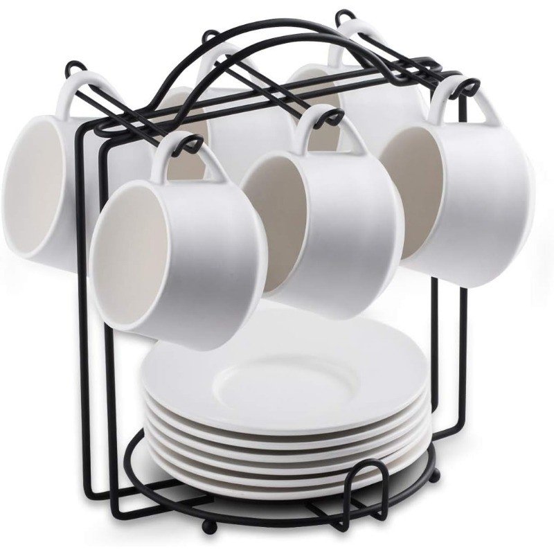 Home > Espresso Cups Set with Saucers and Metal Stand Coffee Cup Set of 6 4 oz Cappuccino Cups Teacup for Tea Party