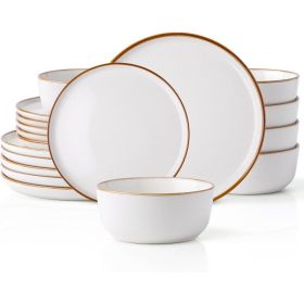 Ceramic Dinnerware Sets for 6, 18 Pieces Stoneware Plates and Bowls Sets, Chip and Scratch Resistant Dishes, Dishwasher (Color: Cappuccino for 6)