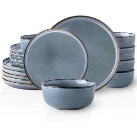 Ceramic Dinnerware Sets for 6, 18 Pieces Stoneware Plates and Bowls Sets, Chip and Scratch Resistant Dishes, Dishwasher (Color: Space Blue  for 6)