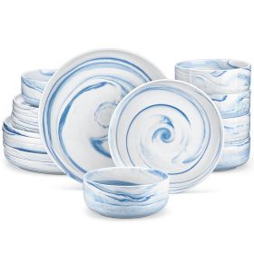 MALACASA Luna series 18-Piece Ceramic Porcelain Dinnerware Set with 6 Pcs Dinner/Dessert Plates,Bowl Tableware Set Service for 6 (Color: Blue Marble)