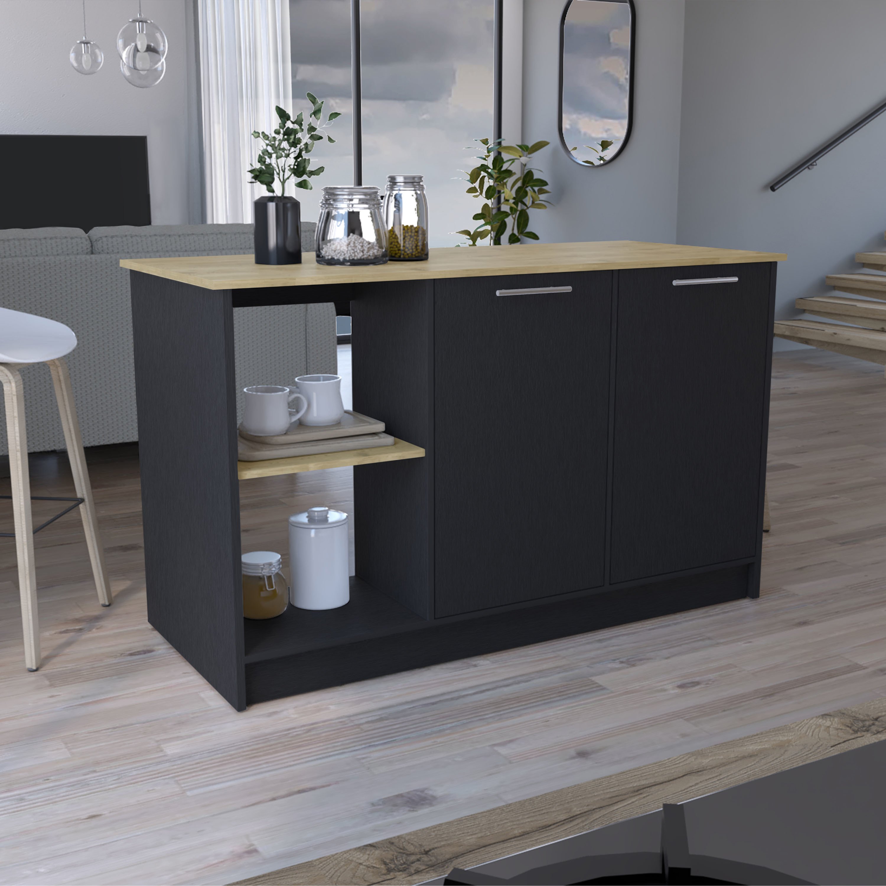 Juniper Kitchen Island with Large Top Surface, Double Door Cabinet, and Open Shelves
