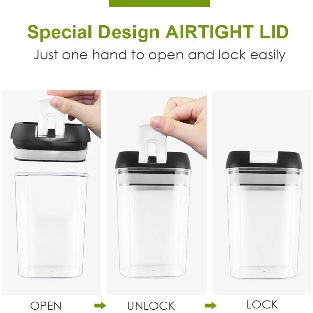 1.Storage Containers Versatile Containers: These airtight food safe containers are not only great for storing dry foods. No need to worry about spilling liquids, just press down on the handle and let the sealing technology do the magic