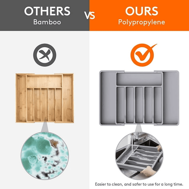 Premium material: made of thick and sturdy premium pp material, the cutlery organizer is bpa free so you can rest assured that it is safe to use with all forms of tableware. The durable construction means it is built to last for a long time.