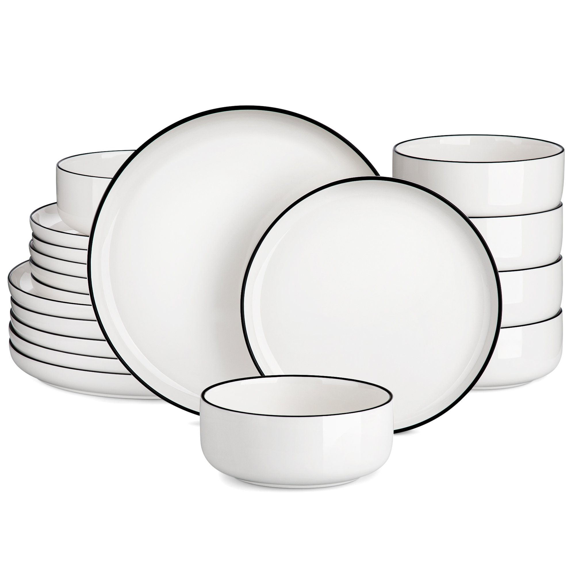 MALACASA Luna series 18-Piece Ceramic Porcelain Dinnerware Set with 6 Pcs Dinner/Dessert Plates,Bowl Tableware Set Service for 6