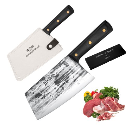 • 【Razor-sharp Handmad Forged Blade】Compared with cheap stainless steel kitchen knives, this cleaver knife is forged from premium high-carbon steel and passes multiple hand-grinding processes, making its blade incredibly sharp and durable. This hand forged knife is made of a single bar of steel rather than cut out from a large sheet of steel, it has a strong and rigid structure offering higher precision during bone cutting, chopping, and cleaving.