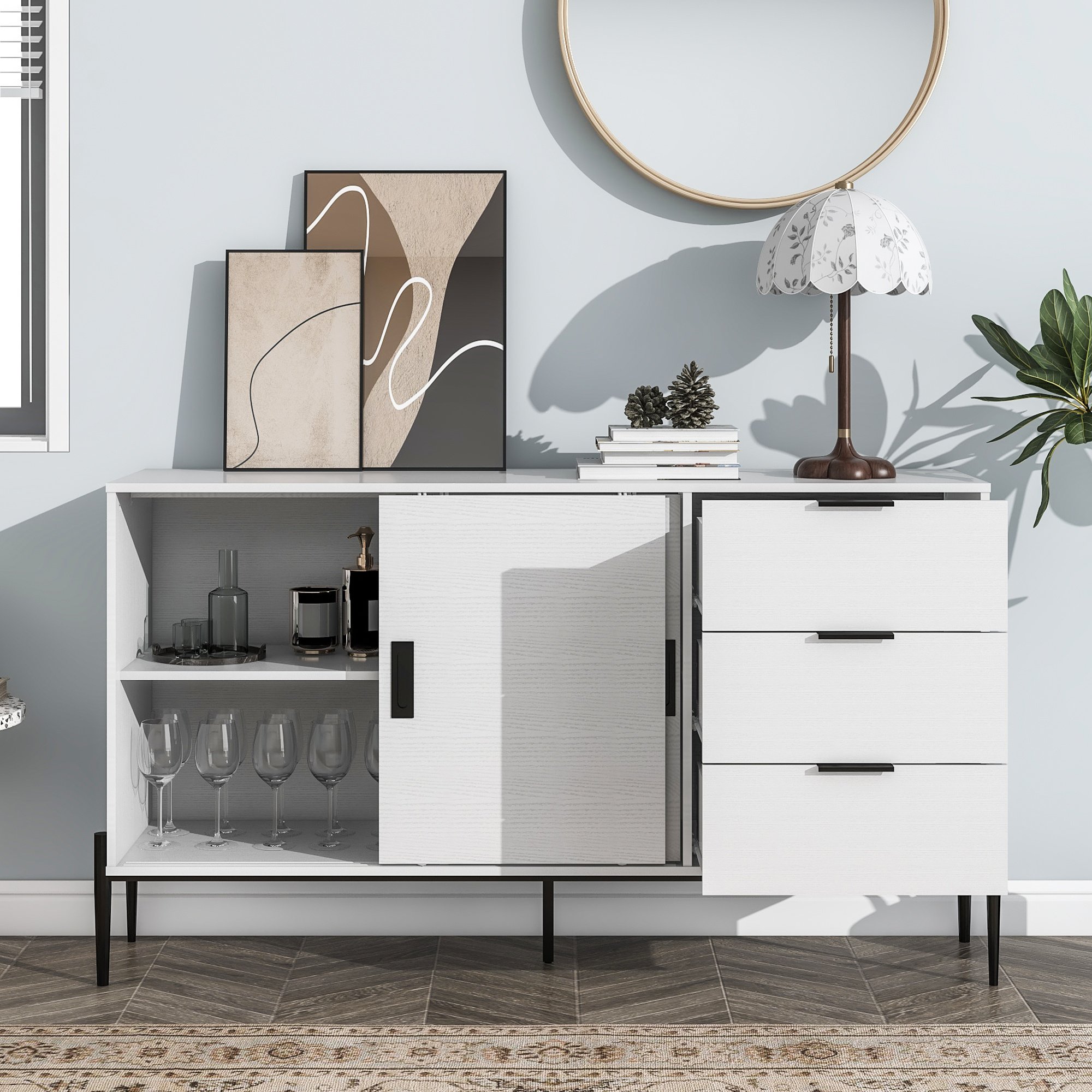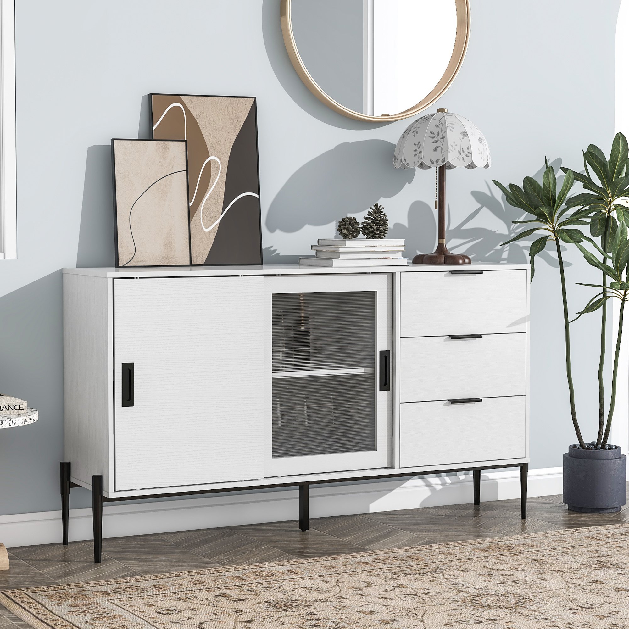 Modern Featured Storage Cabinet Sideboard with Glass Sliding Door and 3 Drawers