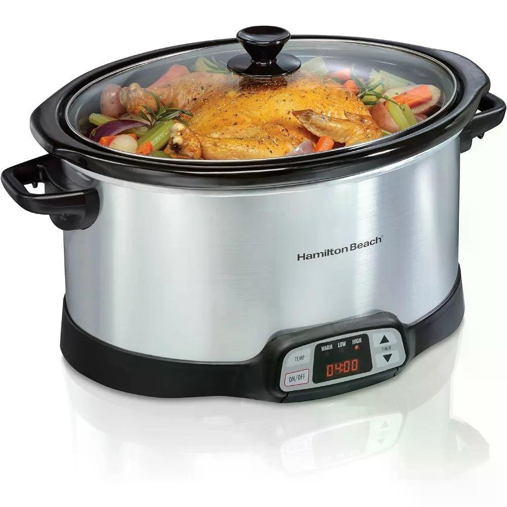 The large 8 quart crock will fit everything from lasagna and desserts to large cuts of meat. After cooking is complete, the slow cooker automatically switches to warm so you can set it and forget it. Make delicious one-pot meals like lasagna, homemade chili, barbecue and macaroni and cheese. It's also great for cooking a variety of foods from meatball appetizers and vegetable side dishes to delicious desserts like peach cobbler and chocolate lava cake.