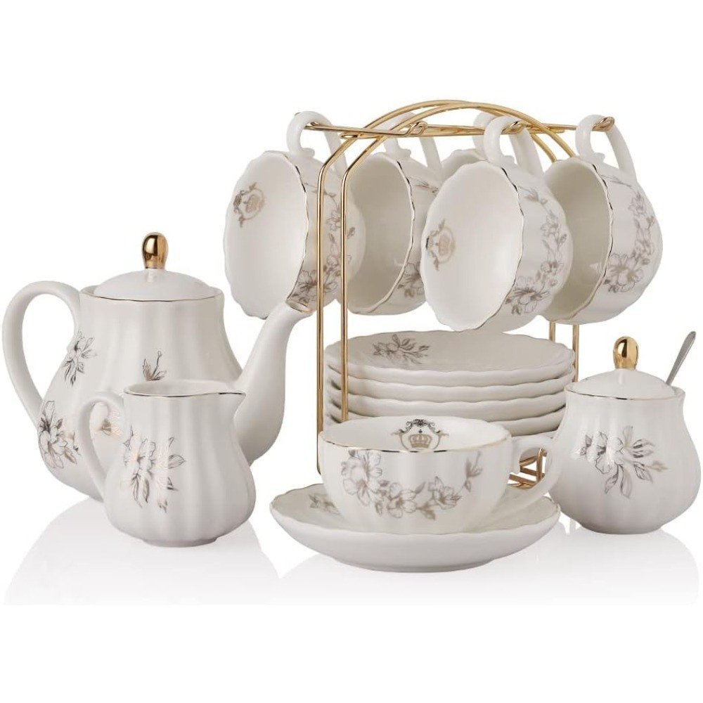 Porcelain Tea Sets British Royal Series, 8 OZ Cups & Saucer Service for 6, Teapot Sugar Bowl Cream Pitcher spoons, Teaware Sets Porcelain Tea Sets British Royal Series, 8 OZ Cups & Saucer Service for 6, Teapot Sugar Bowl Cream Pitcher spoons, Teaware Sets Porcelain Tea Sets British Royal Series, 8 OZ Cups & Saucer Service for 6, Teapot Sugar Bowl Cream Pitcher spoons, Teaware Sets