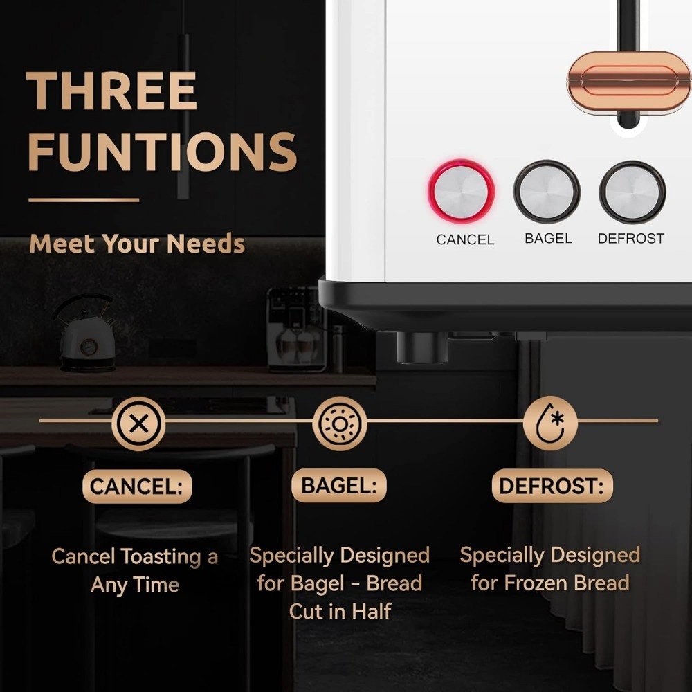 • [FUNCTIONALITY-OVERALL]–This long slot toaster with cancel, defrost, and bagel buttons to give you more control over your foods and to ensure toast or bread are just right. Along with red LED indicator light, make it easy to switch between settings.