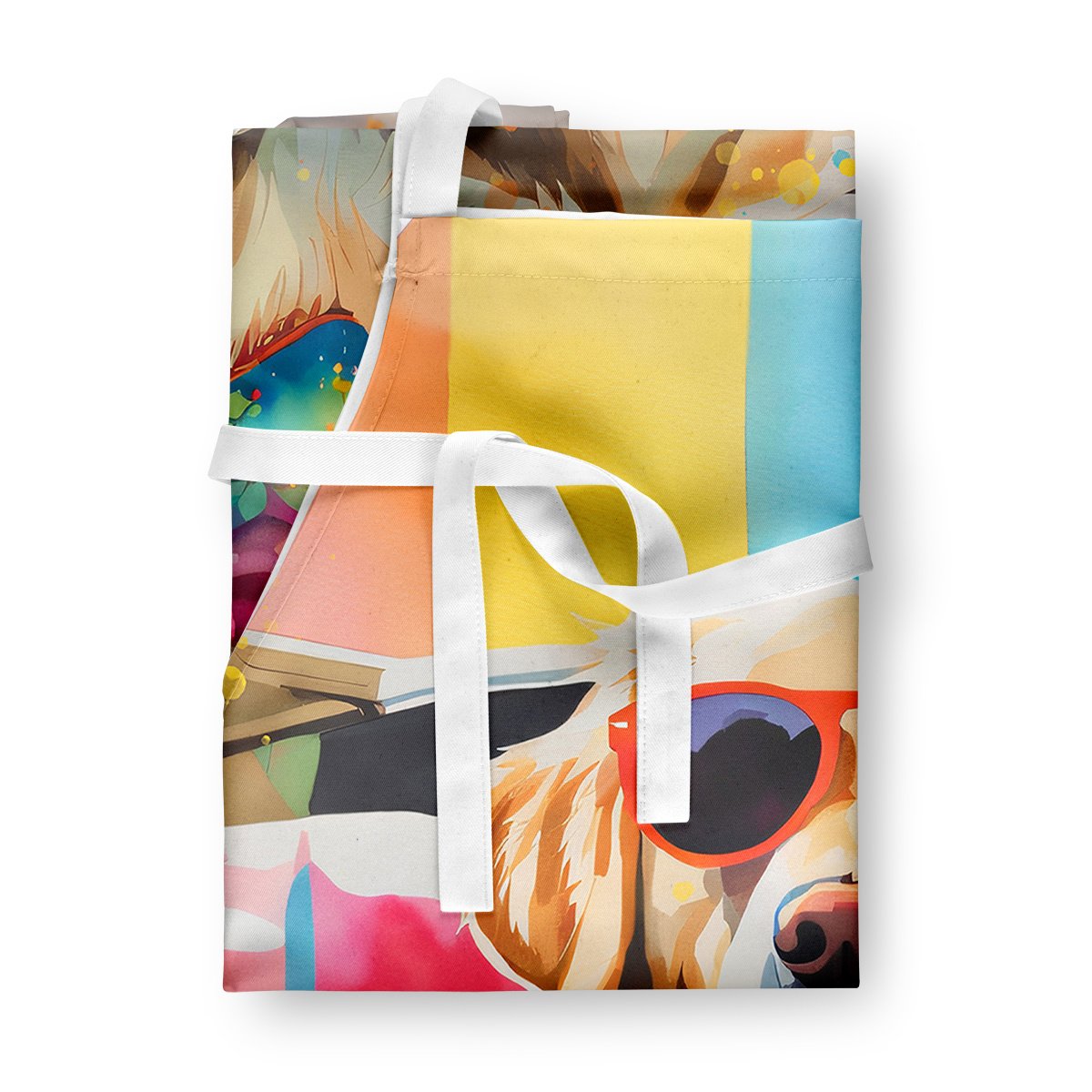 Apron featuring breed specific Yellow Labrador artwork. Elevate your cooking, baking, and grilling experiences with our versatile Kitchen or BBQ Apron. This Bib Style apron isn't just limited to culinary activities - it also serves as an excellent baking apron, artist apron, server apron, gardening apron, or even a dog grooming apron. The apron showcases vibrant full-color artwork contributed by one of our talented artists, bringing a dash of style to your daily tasks. With dimensions of approximately 27"W x 30"H, it provides ample coverage to protect your clothing from spills and splashes. Our apron is meticulously crafted from 100% Ultra Spun Polyester, known for its durability and lightweight nature. The apron comes with white tie straps, ensuring a comfortable and adjustable fit for all. It's a perfect choice for kitchen apron enthusiasts, whether you are a woman or a man. Designed for easy maintenance, this apron is fully machine washable. The quick-drying polyester material actively reduces staining, keeping your apron looking fresh and new for longer. Our beautifully designed apron isn't just a functional kitchen accessory - it's a fashion statement in the culinary world!